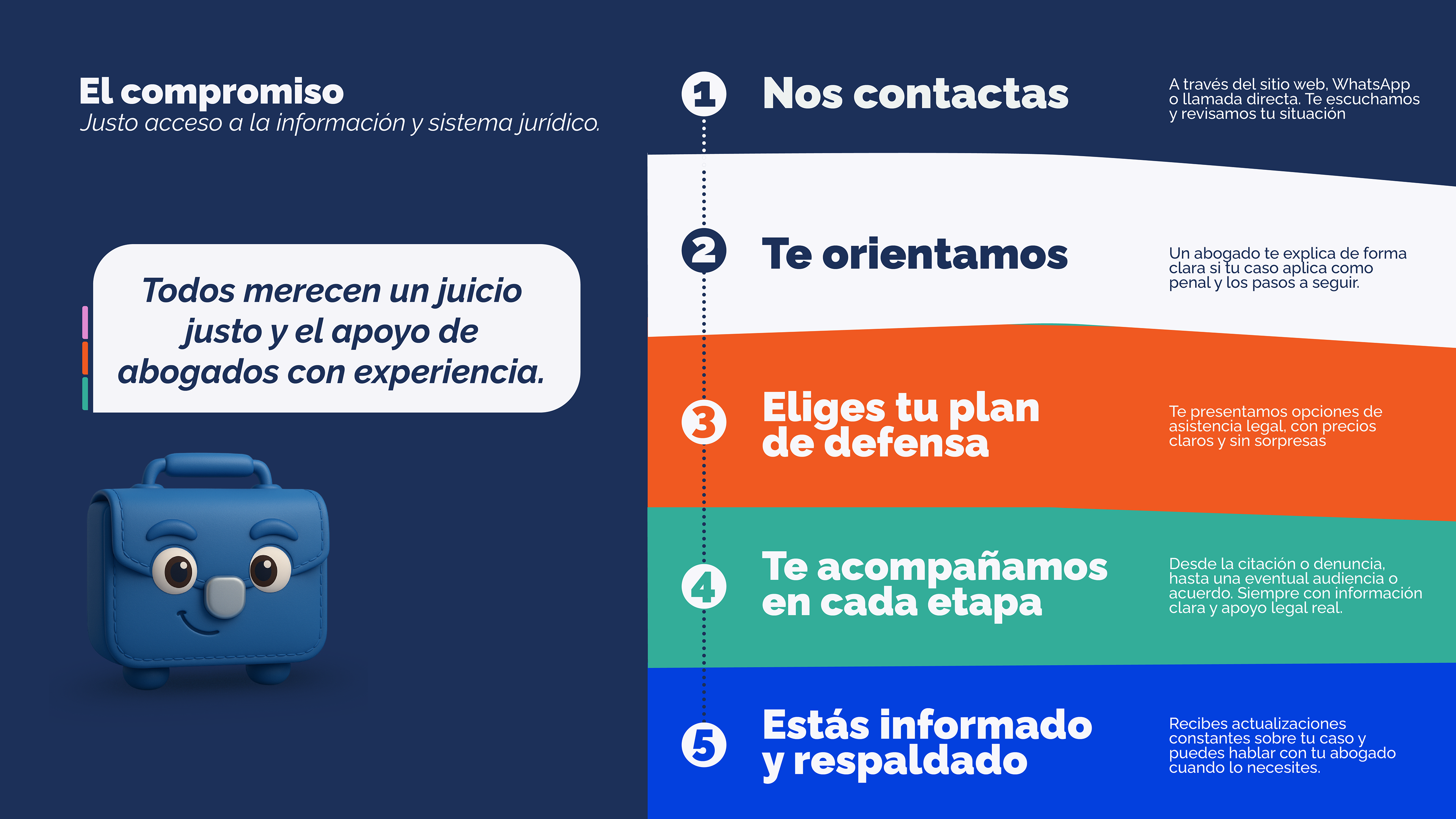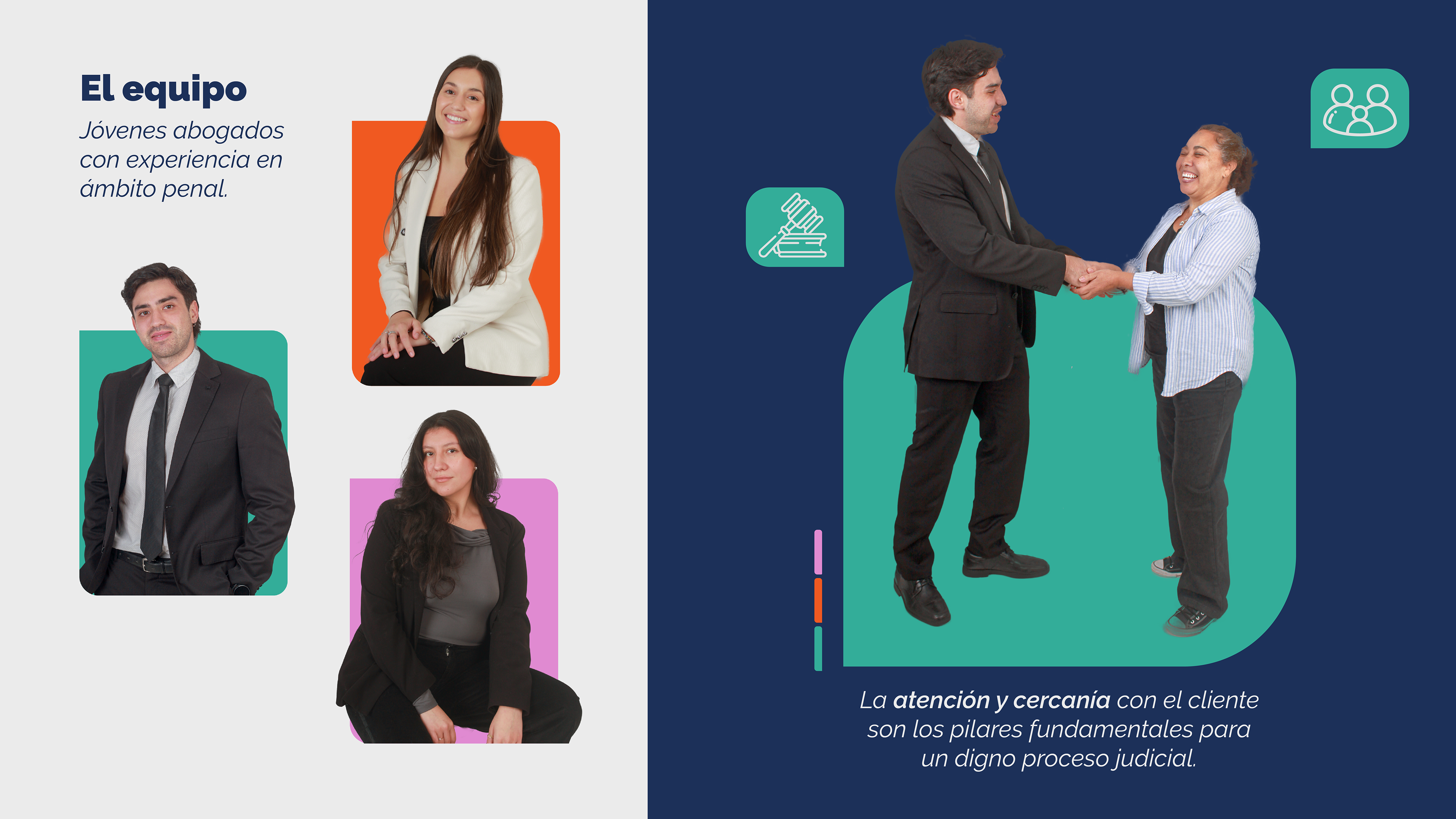 Brief: Diseñar la identidad de marca para un estudio de abogados penalistas, cuyo foco principal es apuntar a un público masivo que necesite de servicios legales confiables a precios asequibles. Este diseño de identidad va inserto en un proyecto de lanzamiento de marca, el cual incluye: naming, logotipo, mascota de marca, diseño de servicios, creación de contenido para redes sociales y estrategias de comunicación, sitio web, material gráfico y todo lo necesario para llegar al público deseado.